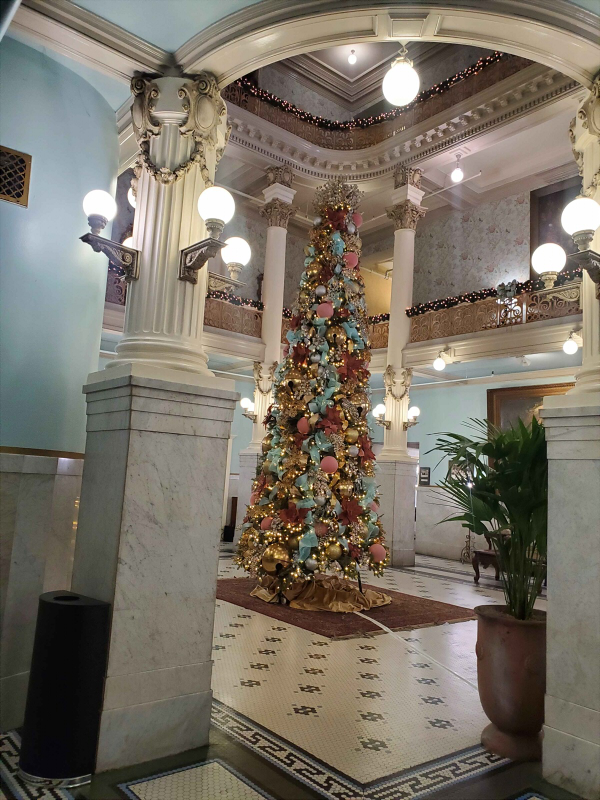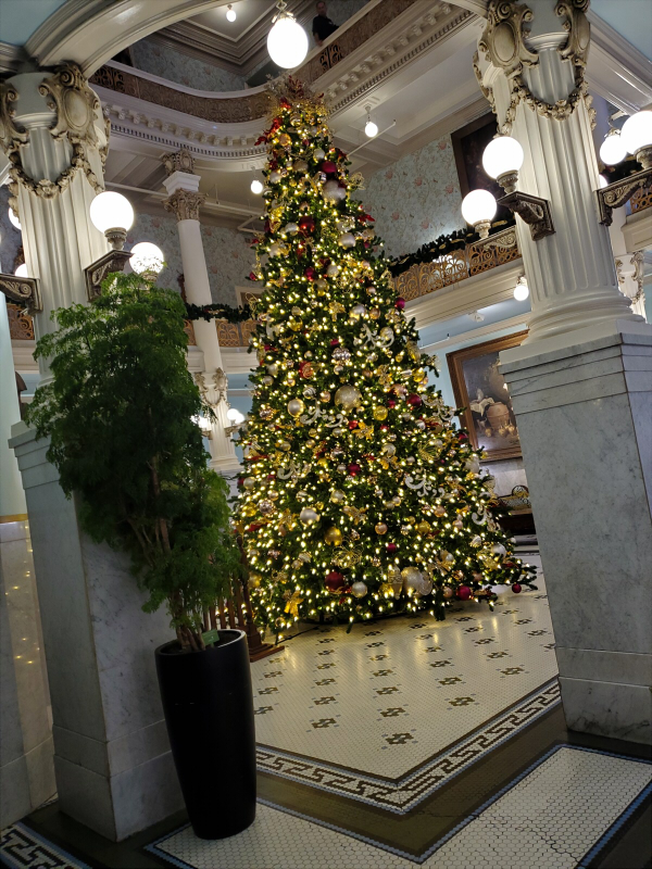 the christmas tree right next to my work is up again! i waited excitedly as they spent a whole shift of mine setting it up. by the time i left for work, i thought they weren't done with the tree, but they actually were?! it's so different from last year's tree, i had to do a double take and go through my pictures to find the one they set up the year prior. it's a little sad! at least three people told me the comparison is so stark and a recession indicator, lmao. but the colors are nice and matching, and i love the ribbons and giant bells. maybe they needed a skinny legend tree because it's less obstructive? that's my theory anyway.