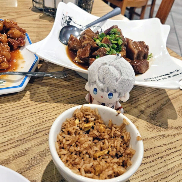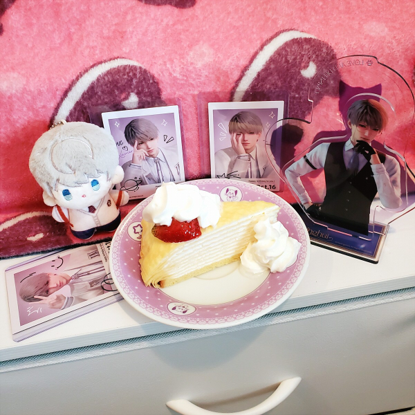 i celebrated xavier's birthday in two parts: first, we went out for braised pork because i was craving it! it was so tender and juicy, like a meat cake... i'm drooling just thinking about it. i had to work on the day of xavier's actual birthday, but i bought a slice of crepe cake to share with him before my shift started. it was really good! ahhh, sweet xavier... he really is so beautiful. that cosmic gaze of his had me shelling out an embarrassing amount of money to pull his 2024 card (i lost my 50/50 to zayne... i was so upset i actually said "FUCK YOU ZAYNE" out loud, lmao) and you know what? it was worth it. it's crazy how much of a sleeper hit xavier has been with me, i never would have guessed i would come to adore him this much. every piece of merch i have of him was a gift too, thank you very very much everyone who has gifted me a little piece of my sleepy little star!!