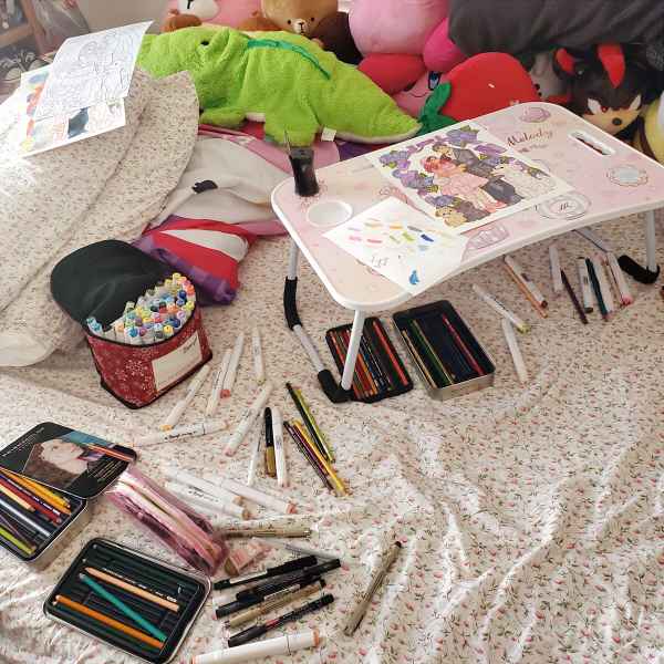 of course the cool weather didn't last long, we're already back to the mid 80s. the heat woke me up, so i got up to turn on the air and decided to finish a drawing i was working on... when i realized my apple pencil wasn't in my bag! i last used it on my way home when i was drawing on the bus and i do remember slipping it back in my bag, but it must have fallen out sometime in between then and my walk home. it probably went unnoticed by me because of the added bulk of my cardigan stuffed into my bag since it was too hot to wear it. i'm really bummed out... those things are expensive. because my ipad case doesn't have a place for the pencil, i always had this worry i was going to lose my pencil, and it's finally come true. i knew better. i really should keep all of my daily pens in a single pouch instead of in various pockets of my bag.