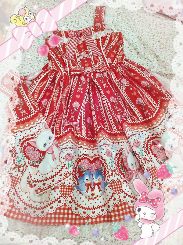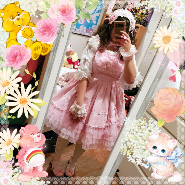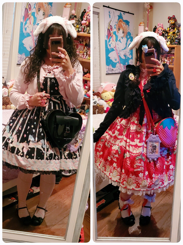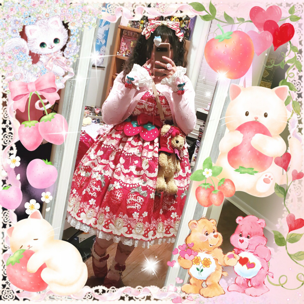 isn't she beautiful?? it's the be my valentine jsk by ap, now i just need my biggest wishlist item... actually i still want to make a wishlist and talk more about the lolita items i'm still in search of, usually i feel like it's really bad luck to announce it in public where everyone can see, but i feel comfortable talking about it here in my safe space. i'm excited to put it together!!! i love lolita fashion!!! i've been wearing it for nearly 13 years now and it still makes me just as happy as the first time i discovered it...