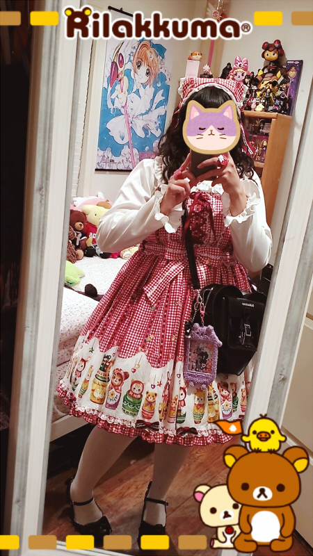 last, i organized a meet to watch the nutcracker right before the year ended... i actually changed my coordinate plans all of a sudden and decided to wear toy parade so i could twin with a friend, but she ended up not being able to make it to the meet... i'm going to repeat the coordinate (an outfit repeater?! gasp!) so i won't show pictures, but here's the last coordinate i wore for the year!! i wore matryoshka doll to go eat a delicious steak dinner. so good!! it was my first time wearing it without the apron since i wanted it to be a more casual coordinate.